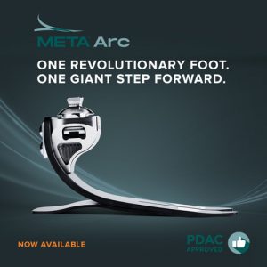 The META™ Arc was designed in partnership with a team at the University of Washington, led by Dr. Murray Maitland PhD, PT with funding support from the NIH to specifically address the difficulty and complaints among prosthesis users when traversing in the community, specifically uneven terrain. The resulting product includes a unibody foot plate which reduces weight and a polycentric Arc ankle that immediately positions the foot relative to the ground by inverting and everting in a trajectory that replicates the human ankle. This foot maintains stability in a wide range of positions, reduces lateral forces placed on the knee and is PDAC approved for L5981 and L5986.
