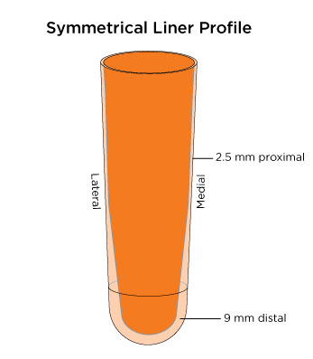 • Transtibial liners with a uniform profile feature a standard umbrella.