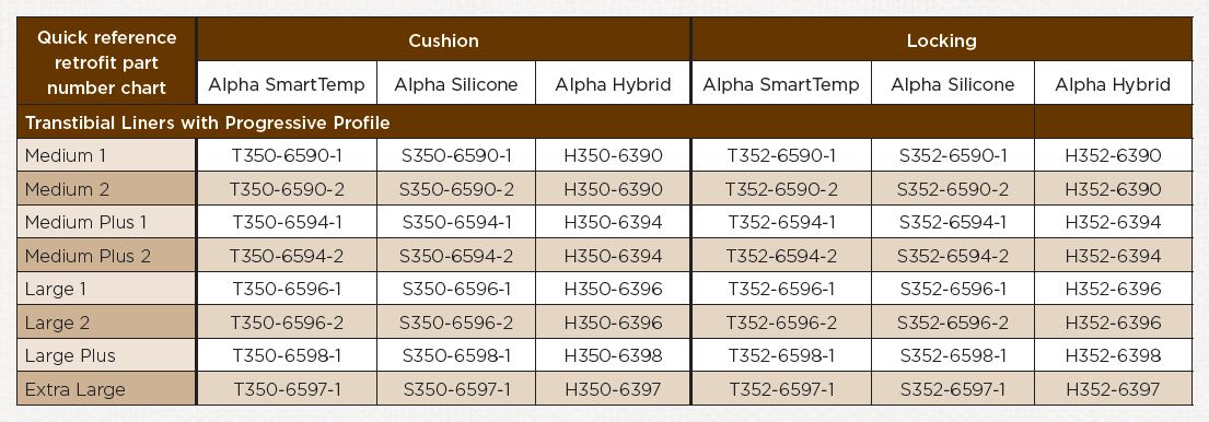 The key to retrofitting is the pattern and thickness of the interface material inside the liner, called the liner profile. Liners with the same profile will fit into the same socket. Because WillowWood offers a range of liners with the same profile, patients don’t need to switch sockets to switch liners. There are many instances in which it’s clinically appropriate to swap out one kind of Alpha Liner for another. Retrofitting can be used to manage residual limb volume changes or to tailor interface materials for lifestyle activities.[/vc_column_text][/vc_column][/vc_row][vc_row][vc_column][vc_column_text]